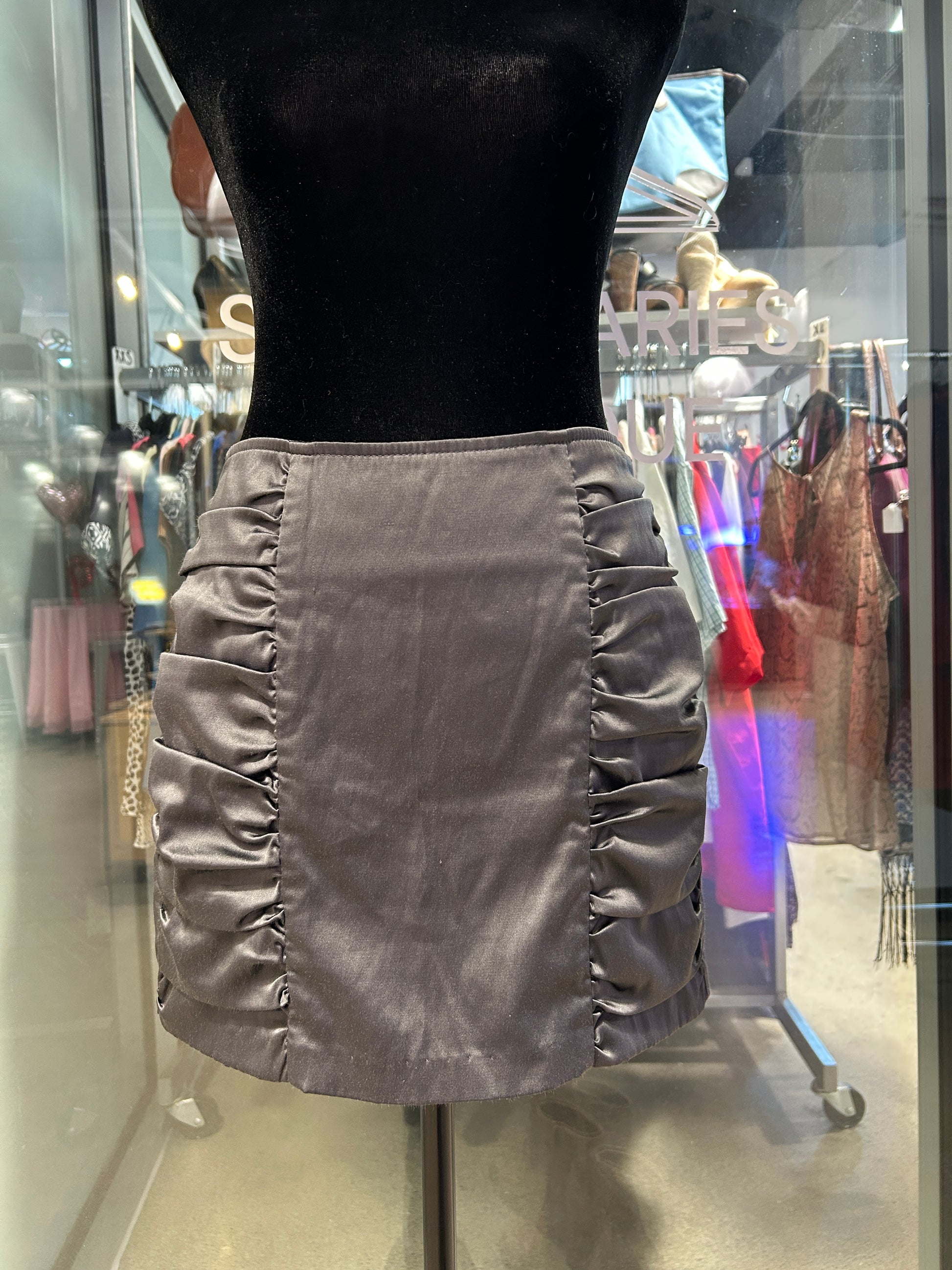 “2b Bebe” Grey side pleated puff pick up mini skirt with back hook and side closure
