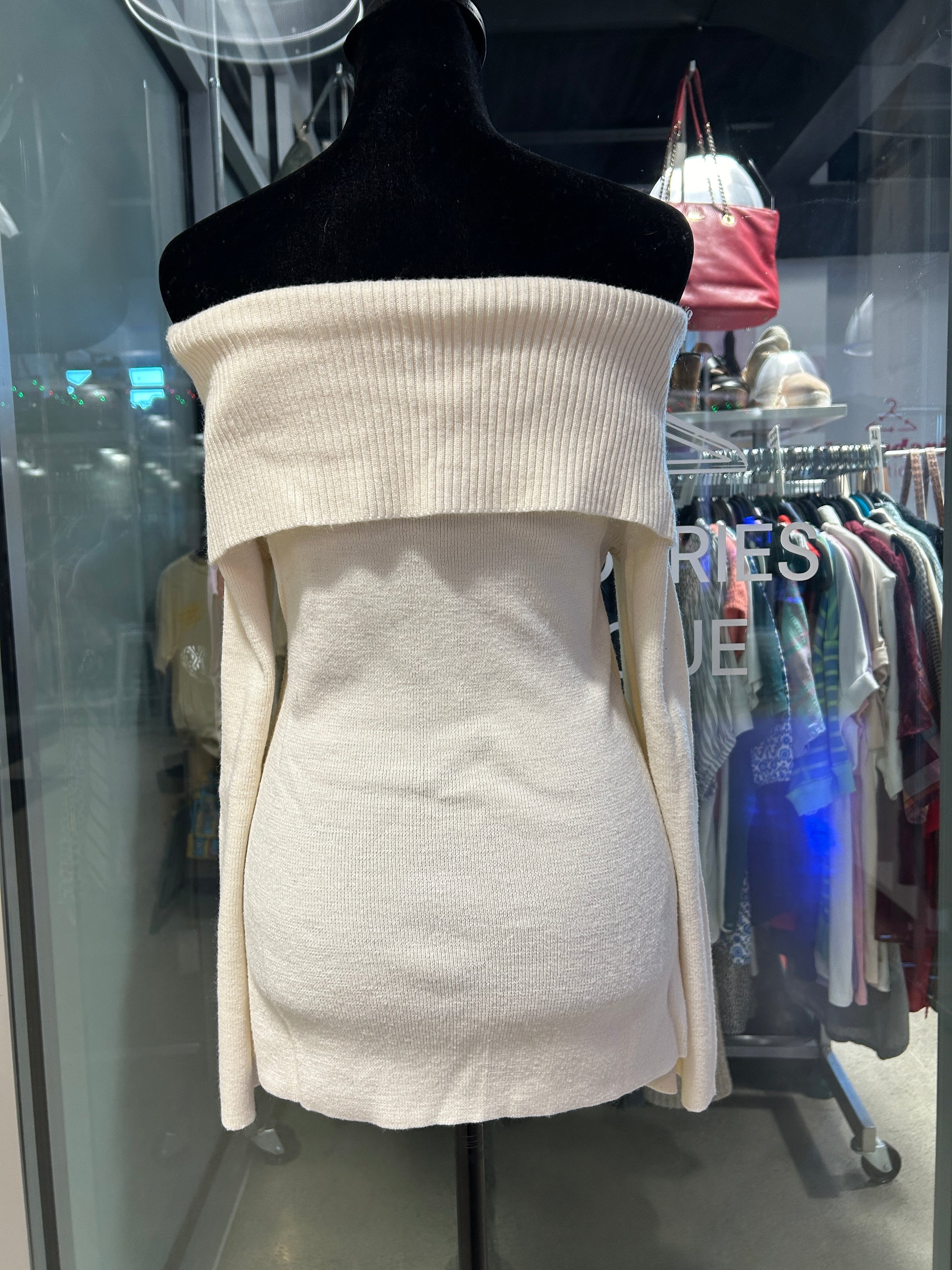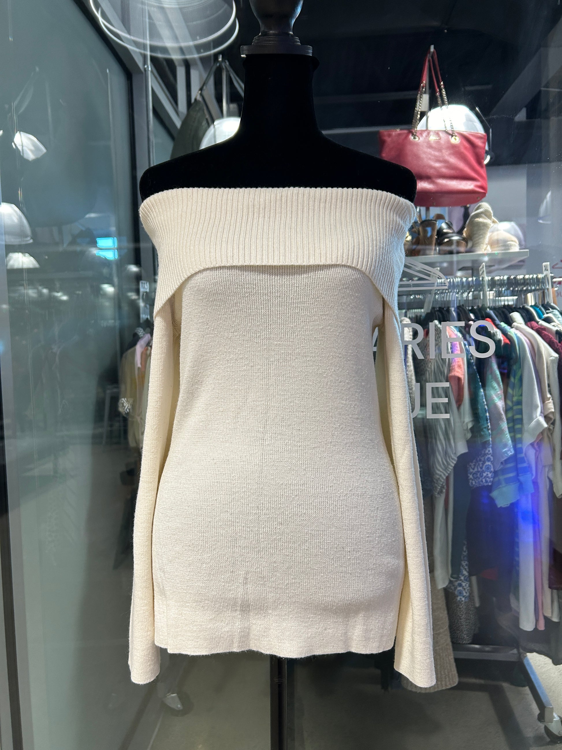 “Arden B.” Cream Off-The-Shoulder/ Fold-Over Top Wool-Blend Sweater