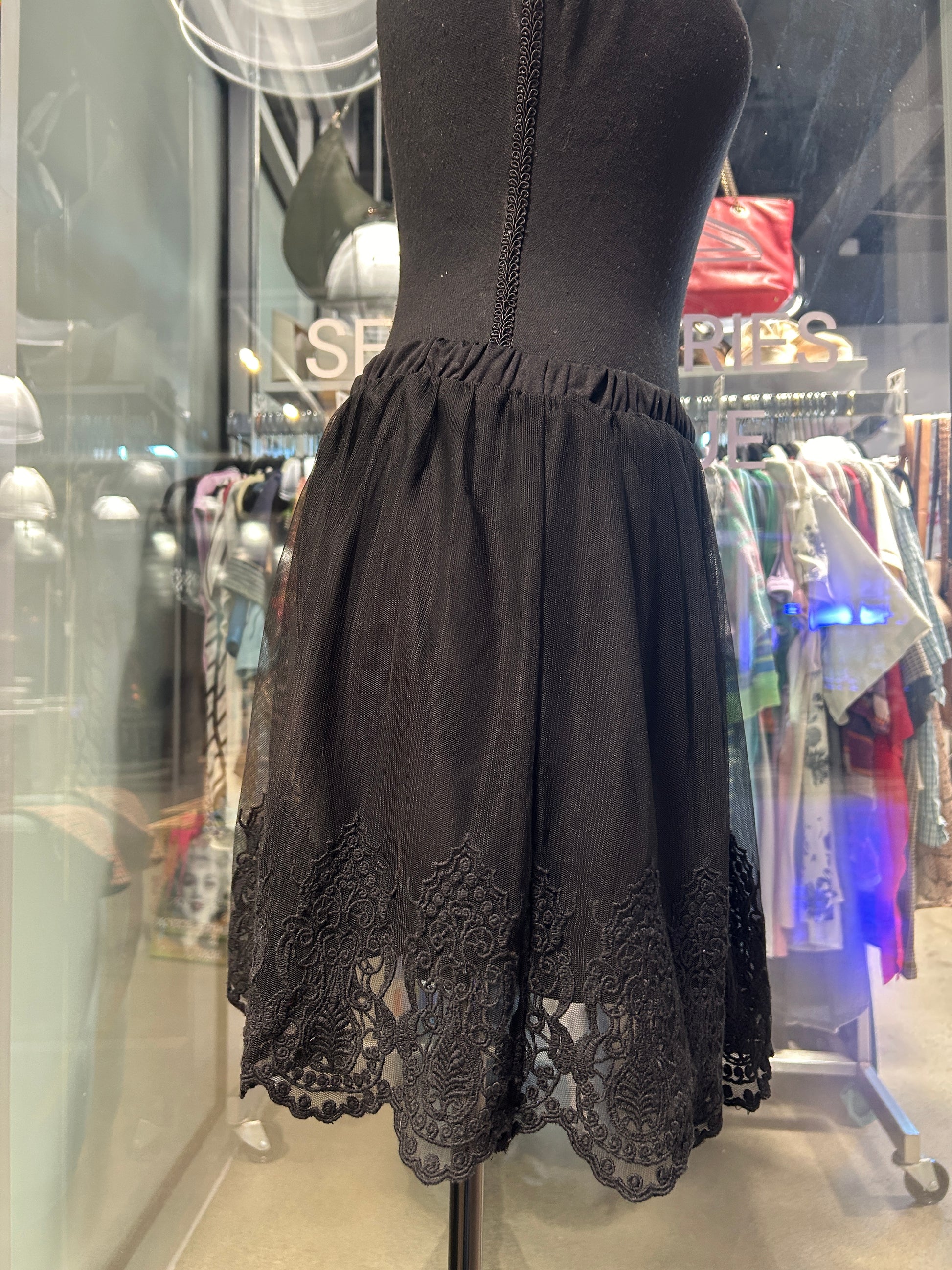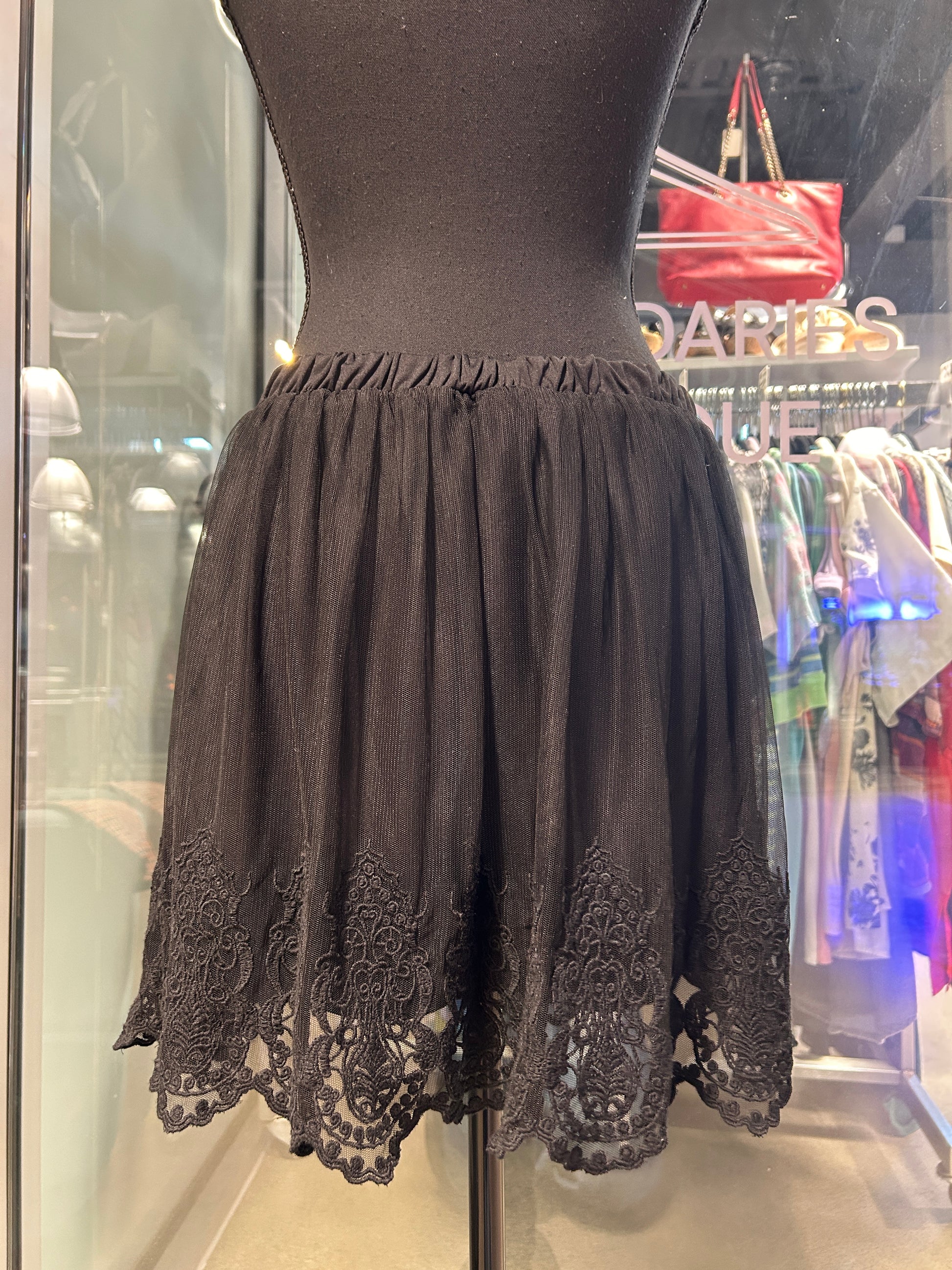 Black mesh lace skirt with underlining, elastic waistband