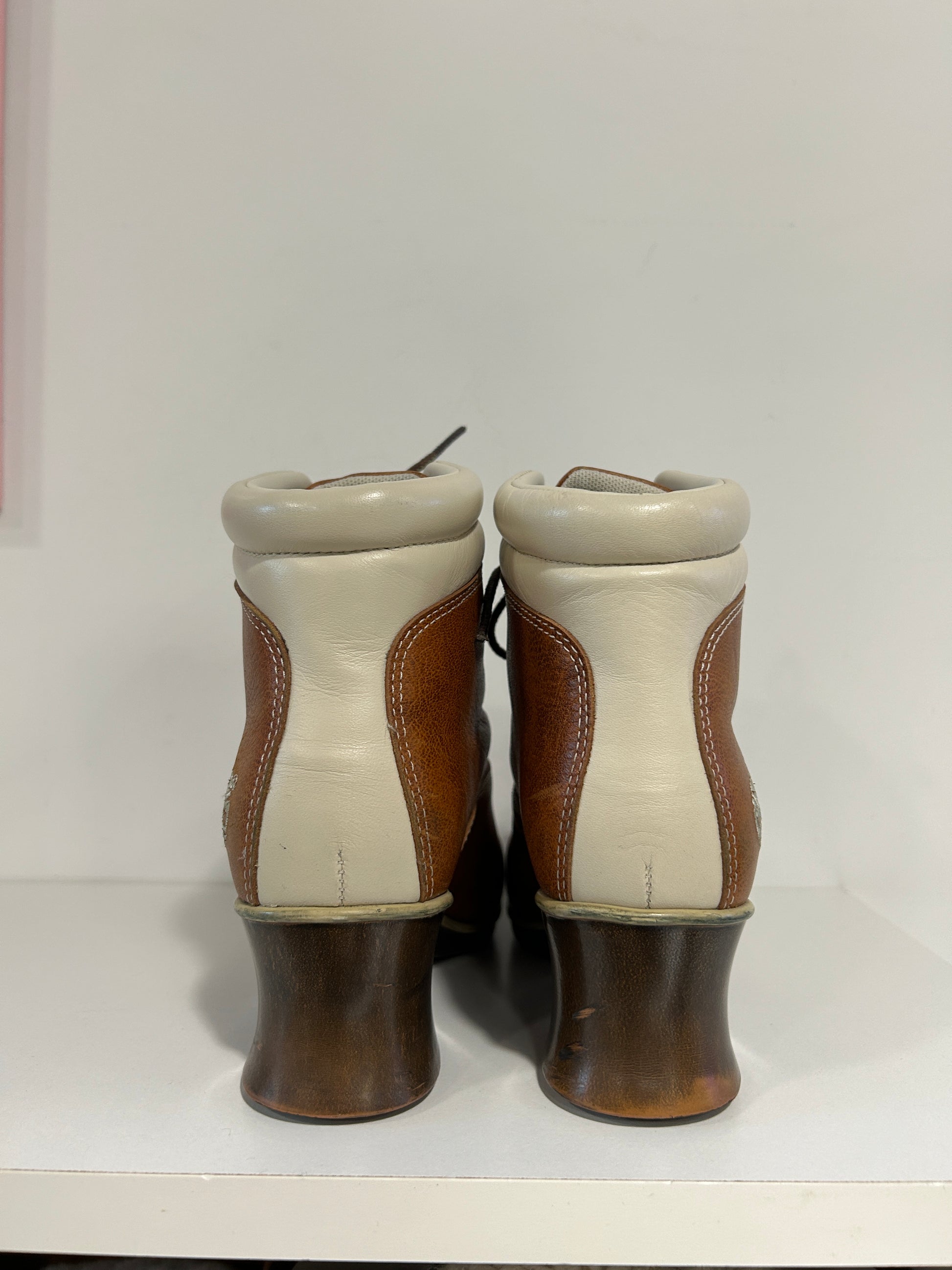 Timberland Ankle Wedge Moc-Toe T-665 saddle brown lace up leather boots.