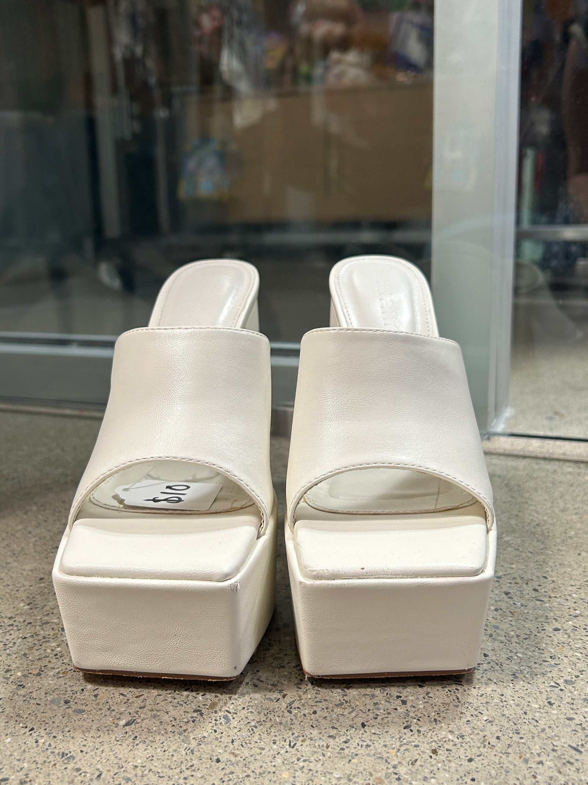 Liliana White leather chunky heel mules